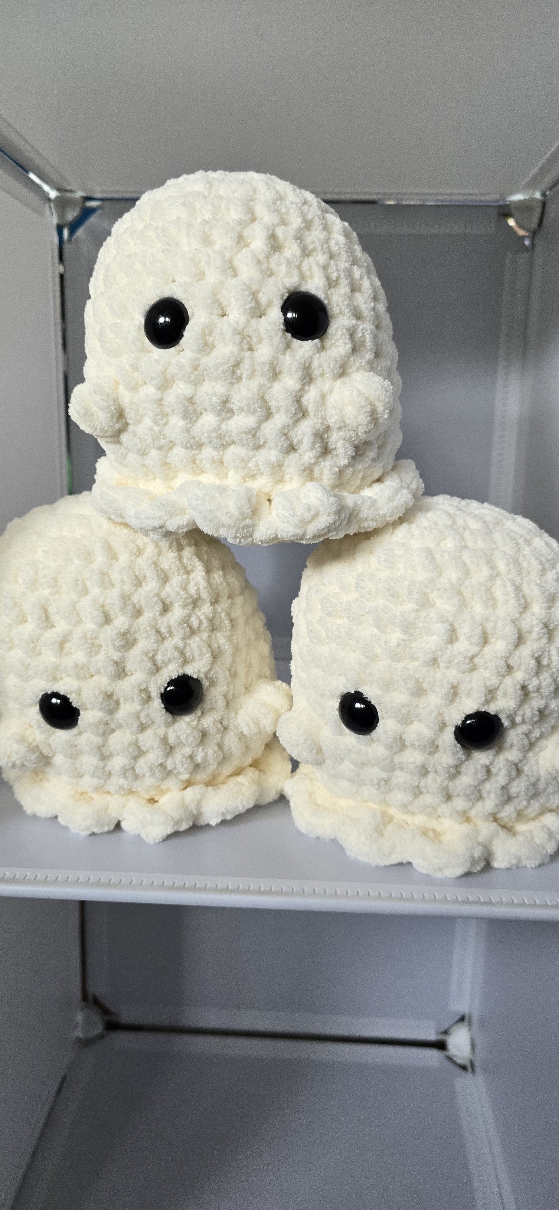 These adorable crocheted ghost buddies are the perfect addition to your spooky season décor! Each ghost is handmade with soft, plush yarn, featuring big, black safety eyes and a charming, textured finish that gives them a cuddly yet eerie appeal. Whether you’re decorating for Halloween or looking for a cute, ghostly companion, these ghosts are sure to add a touch of fun and whimsy to any space.