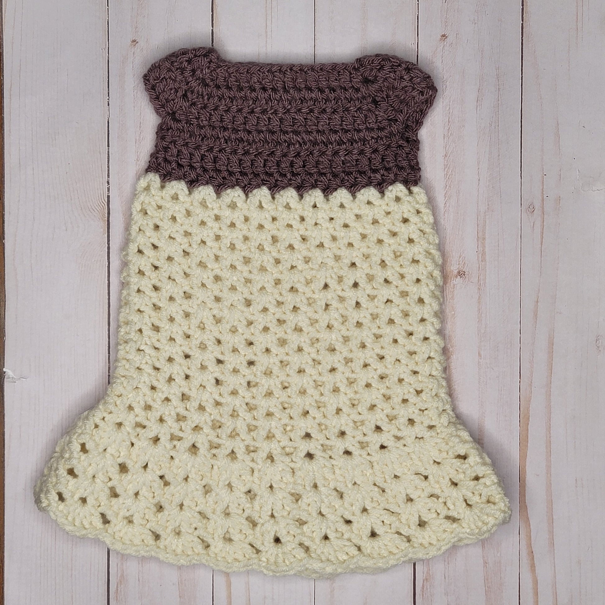 Behold the enchanting artistry of crochet, weaving threads of magic into stunning gowns for 18" dolls.